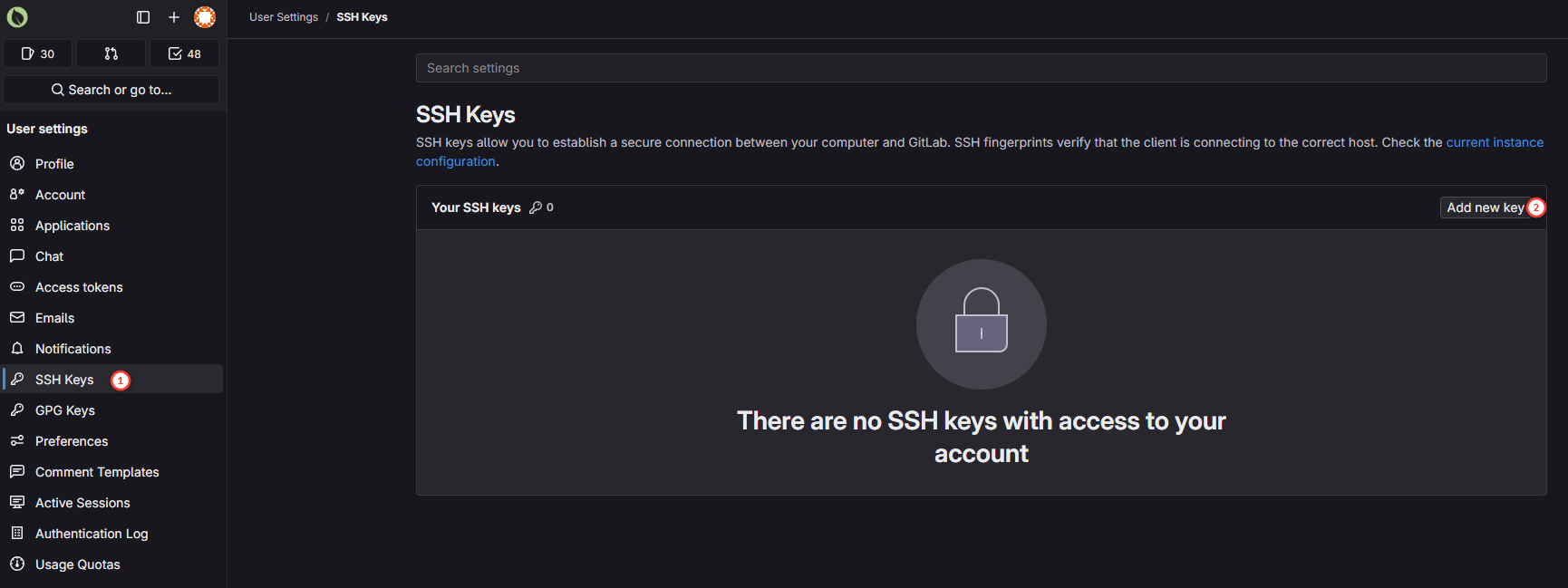 ) в SSH-ключи профиля GitLabПосле этого вы сможете клонировать и работать с репозиториями по SSH-адресу