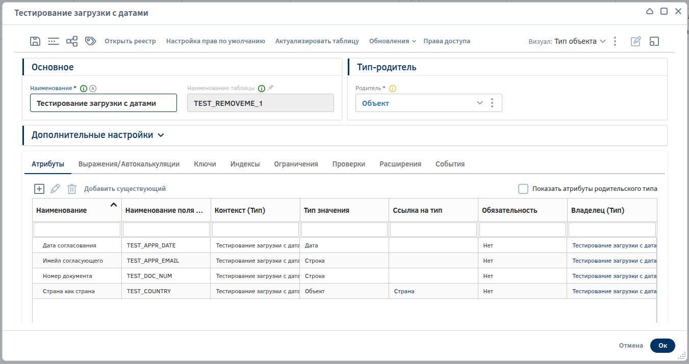 Создал новый тип, наследник Объект'а, добавил три атрибута Страна (ссылка на тип Страна), Дата рождения (Дата), Имейл (Строка).